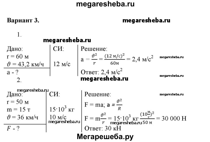 ГДЗ по физике 9 класс Марон дидактические материалы Базовый уровень самостоятельные работы СР-10 - Вариант 3