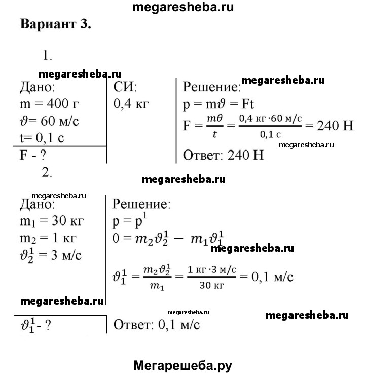 ГДЗ по физике 9 класс Марон дидактические материалы Базовый уровень самостоятельные работы СР-11 - Вариант 3