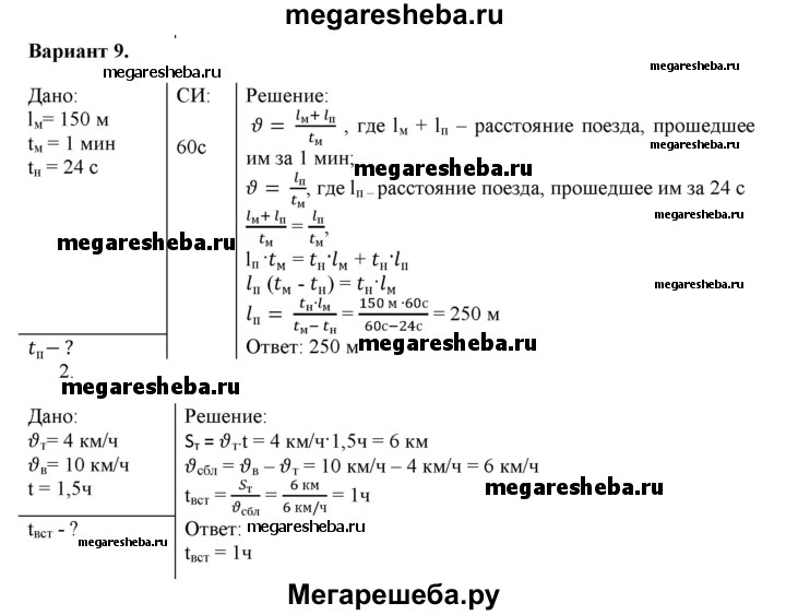 ГДЗ по физике 9 класс Марон дидактические материалы Базовый уровень самостоятельные работы СР-2 - Вариант 9