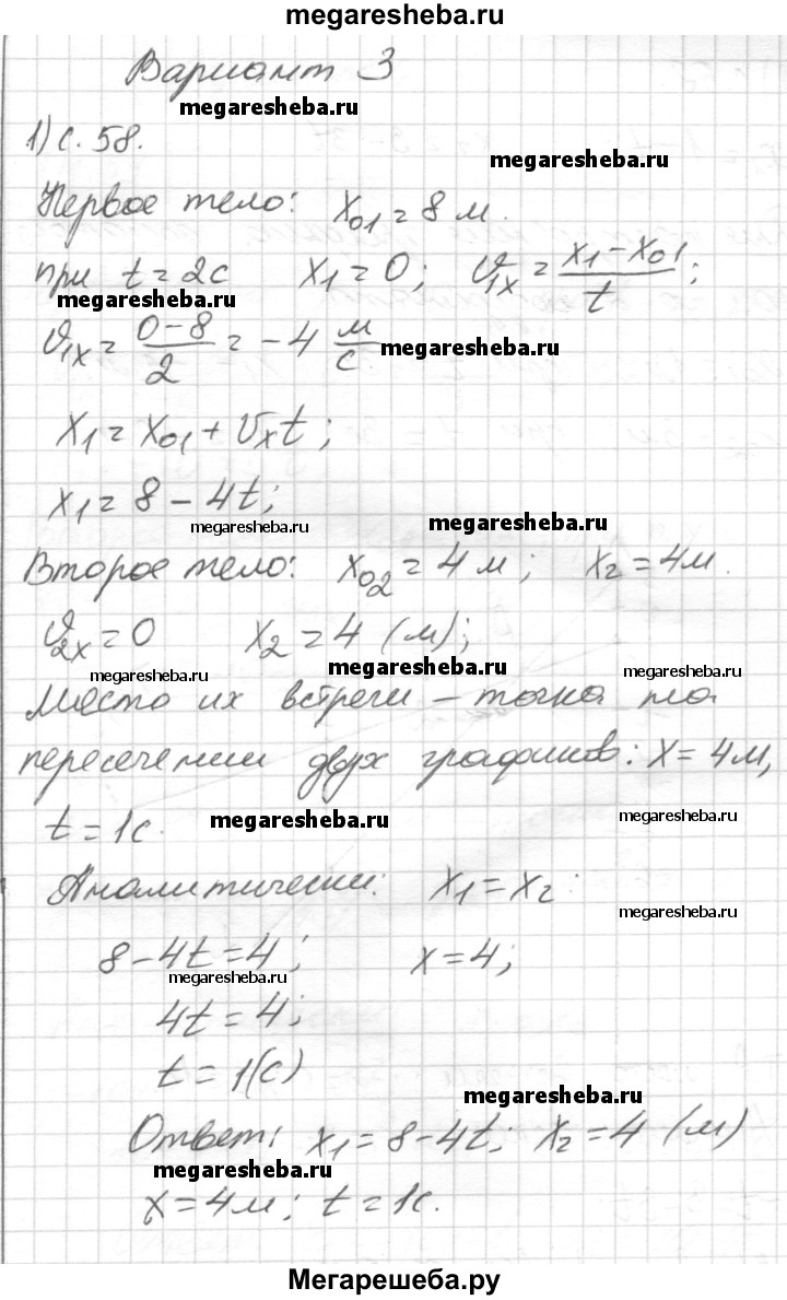 ГДЗ по физике 9 класс Марон дидактические материалы Базовый уровень самостоятельные работы СР-3 - Вариант 3