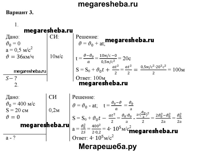 ГДЗ по физике 9 класс Марон дидактические материалы Базовый уровень самостоятельные работы СР-5 - Вариант 3