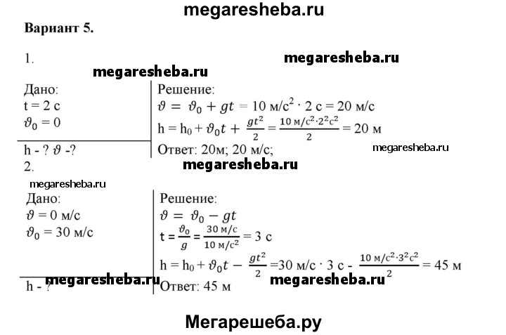 ГДЗ по физике 9 класс Марон дидактические материалы Базовый уровень самостоятельные работы СР-8 - Вариант 5