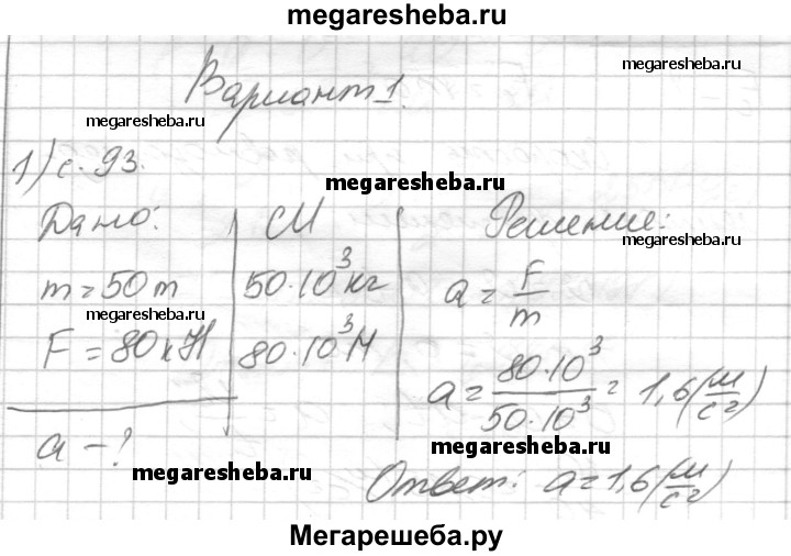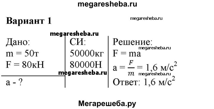 ГДЗ по физике 9 класс Марон дидактические материалы Базовый уровень контрольные работы КР-2 вариант 1 - 1