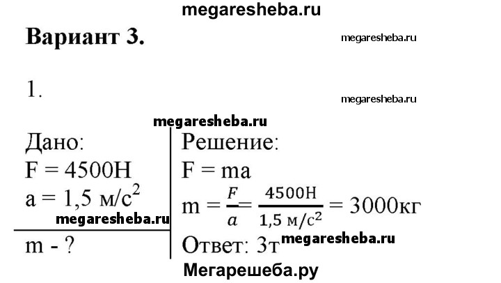 Подробный решебник (ГДЗ) по Физике за 9 (девятый) класс дидактические материалы - готовый ответ контрольные работы КР-2 вариант 3 - 1. Авторы учебника: Марон, Марон, Базовый уровень. Издательство: Дрофа 2016-2024.