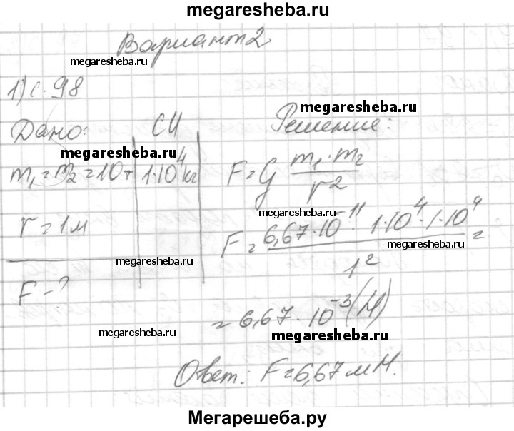 ГДЗ по физике 9 класс Марон дидактические материалы Базовый уровень контрольные работы КР-3 вариант 2 - 1