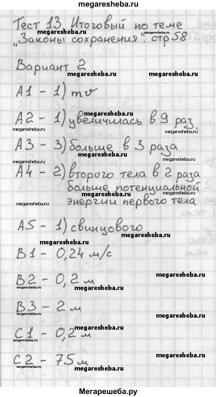 Подробный решебник (ГДЗ) по Физике за 9 (девятый) класс контрольно-измерительные материалы - готовый ответ тест 13. вариант - 2. Авторы учебника: Лозовенко. Издательство: ВАКО 2016.