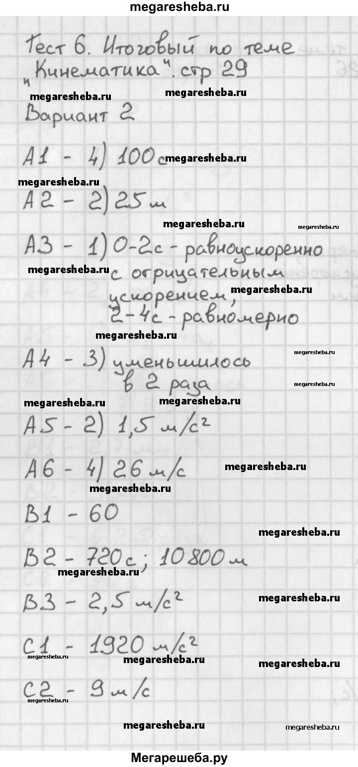 Подробный решебник (ГДЗ) по Физике за 9 (девятый) класс контрольно-измерительные материалы - готовый ответ тест 6. вариант - 2. Авторы учебника: Лозовенко. Издательство: ВАКО 2016.