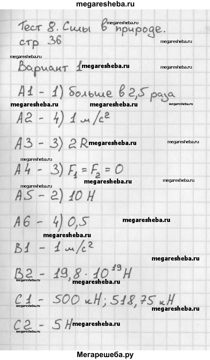 Подробный решебник (ГДЗ) по Физике за 9 (девятый) класс контрольно-измерительные материалы - готовый ответ тест 8. вариант - 1. Авторы учебника: Лозовенко. Издательство: ВАКО 2016.