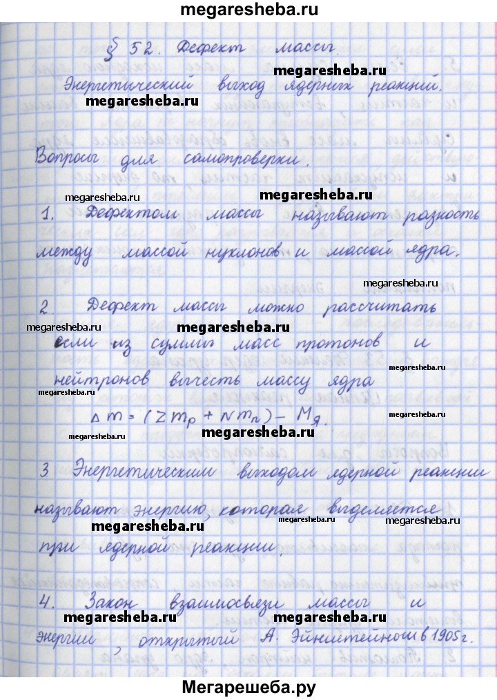 Подробный решебник (ГДЗ) по Физике за 9 (девятый) класс - готовый ответ вопросы и задания. параграф - 52. Авторы учебника: Пурышева, Важеевская, Чаругин. Издательство: Дрофа 2017.