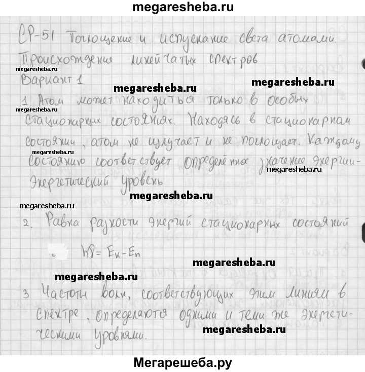 Подробный решебник (ГДЗ) по Физике за 9 (девятый) класс самостоятельные и контрольные работы - готовый ответ самостоятельные работы СР-51. вариант - 1. Авторы учебника: Марон, Марон. Издательство: Дрофа .