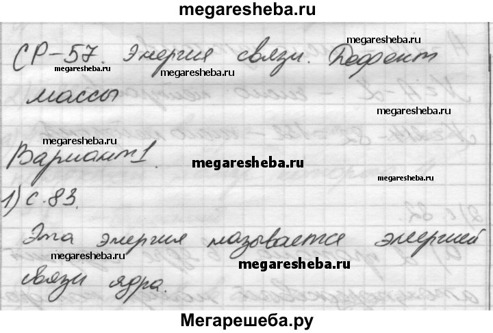 Подробный решебник (ГДЗ) по Физике за 9 (девятый) класс самостоятельные и контрольные работы - готовый ответ самостоятельные работы СР-57. вариант - 1. Авторы учебника: Марон, Марон. Издательство: Дрофа .