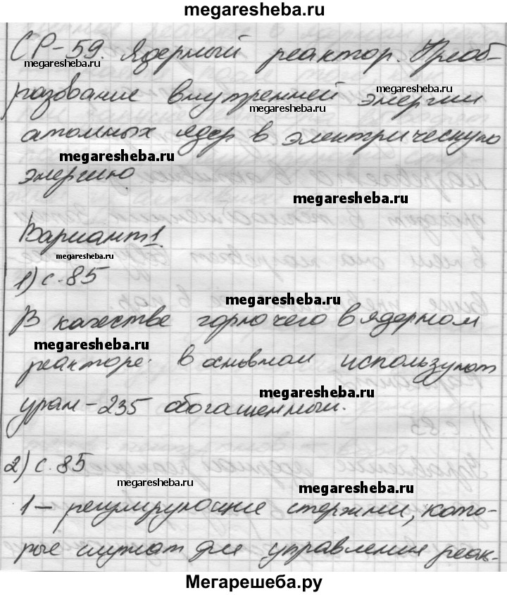 Подробный решебник (ГДЗ) по Физике за 9 (девятый) класс самостоятельные и контрольные работы - готовый ответ самостоятельные работы СР-59. вариант - 1. Авторы учебника: Марон, Марон. Издательство: Дрофа .