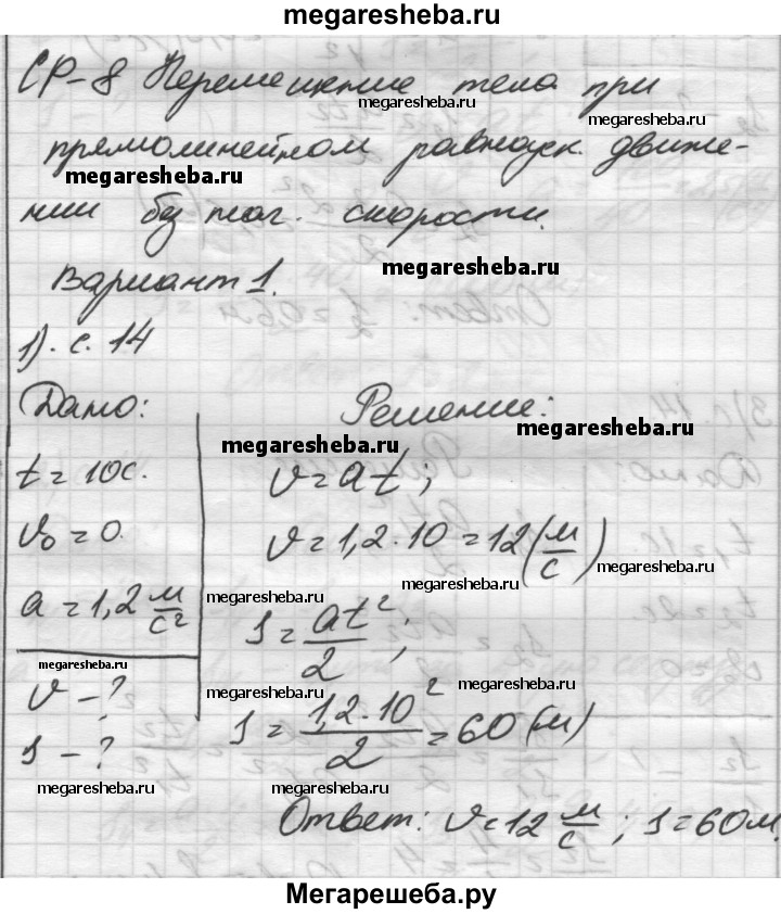 ГДЗ по физике 9 класс Марон самостоятельные и контрольные работы самостоятельные работы СР-8. вариант - 1