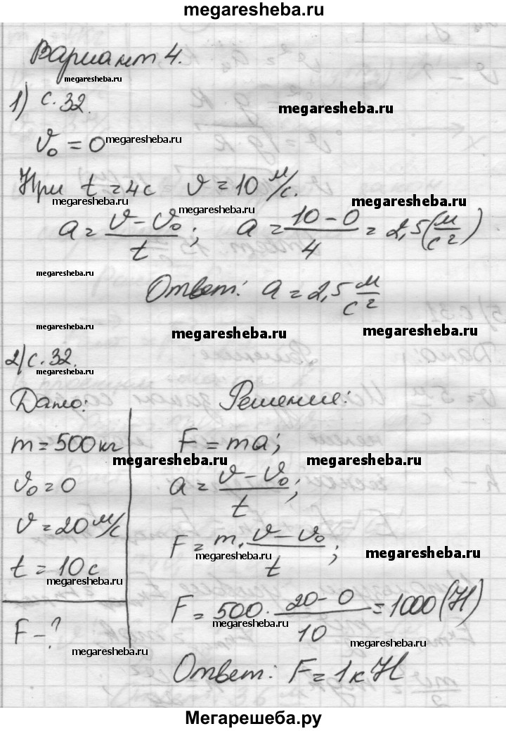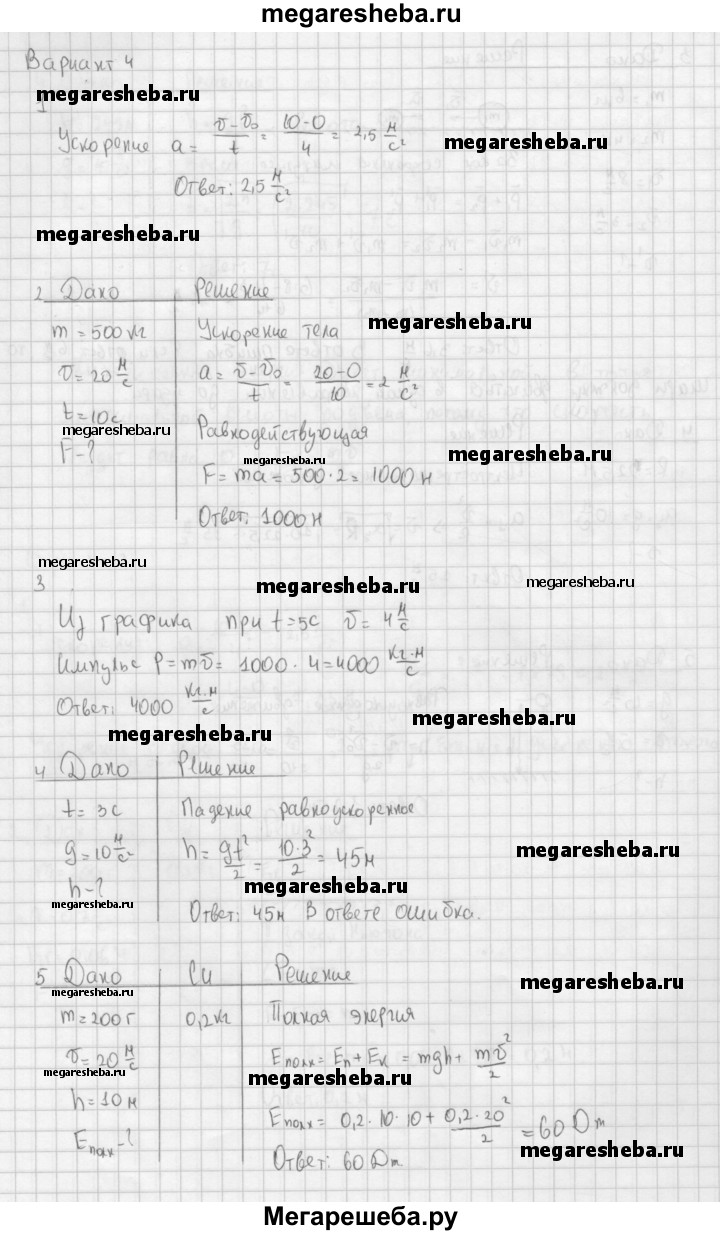 ГДЗ по физике 9 класс Марон самостоятельные и контрольные работы контрольные работы КР-1. вариант - 4
