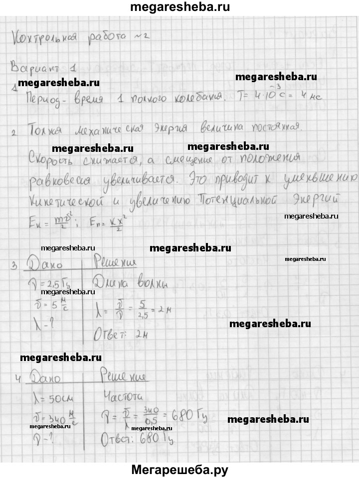ГДЗ по физике 9 класс Марон самостоятельные и контрольные работы контрольные работы КР-2. вариант - 1