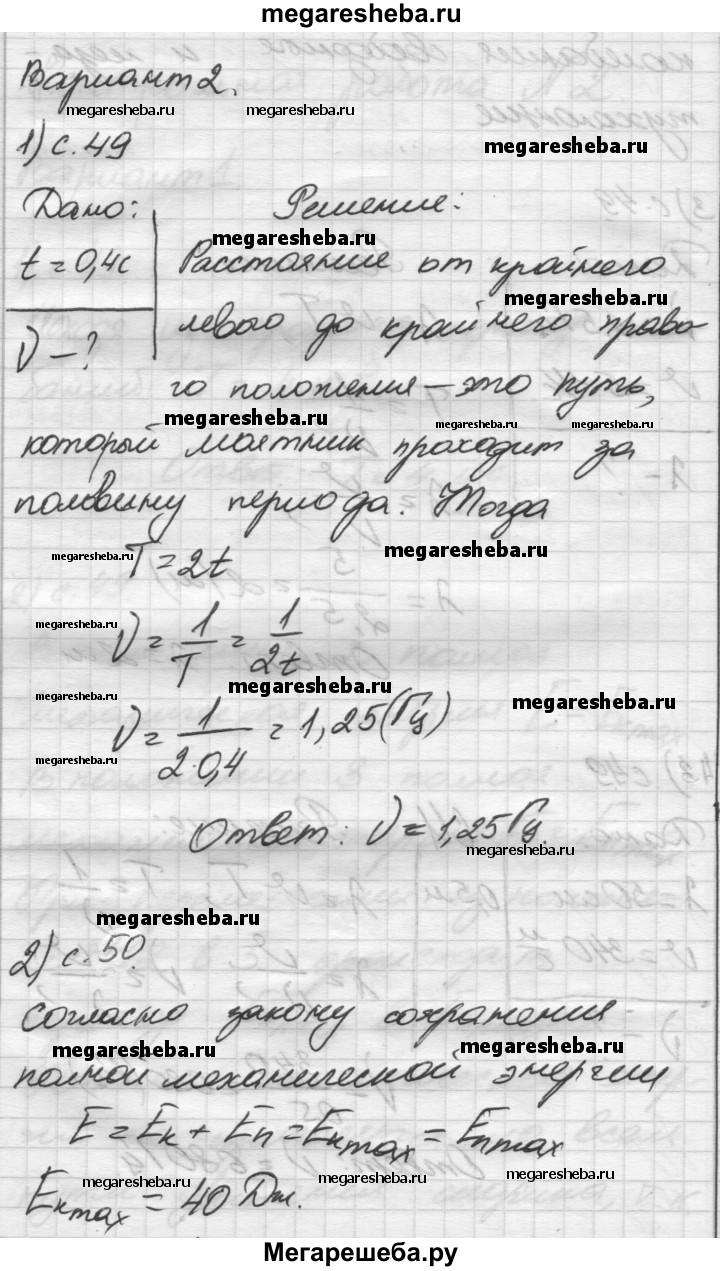 Подробный решебник (ГДЗ) по Физике за 9 (девятый) класс самостоятельные и контрольные работы - готовый ответ контрольные работы КР-2. вариант - 2. Авторы учебника: Марон, Марон. Издательство: Дрофа .