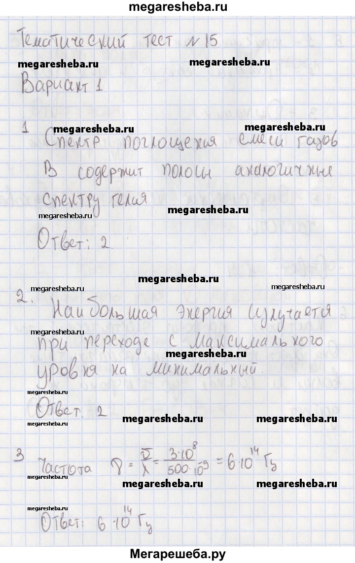 Подробный решебник (ГДЗ) по Физике за 9 (девятый) класс тесты - готовый ответ тематические тесты тематический тест №15. вариант - 1. Авторы учебника: Слепнева. Издательство: Дрофа 2016.