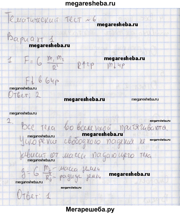 Подробный решебник (ГДЗ) по Физике за 9 (девятый) класс тесты - готовый ответ тематические тесты тематический тест №6. вариант - 1. Авторы учебника: Слепнева. Издательство: Дрофа 2016.