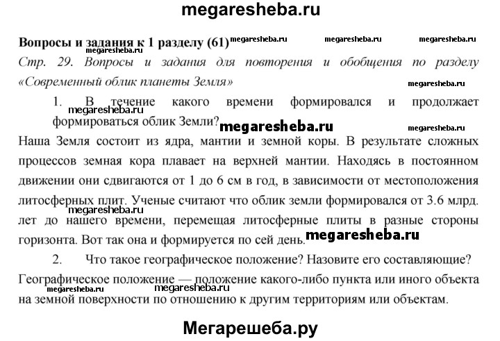 Решебник к учебнику 2017 / параграф / вопросы к 1 разделу