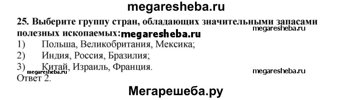 Подробный решебник (ГДЗ) по Географии за 10‐11 (десятый‐одиннадцатый) класс Мой тренажер - готовый ответ Человек и ресурсы Земли - 25. Авторы учебника: Гладкий, Николина, Базовый и углубленный уровень. Издательство: Просвещение 2016.