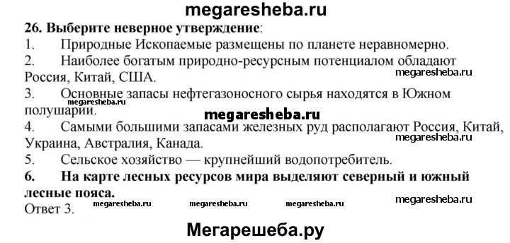 Подробный решебник (ГДЗ) по Географии за 10‐11 (десятый‐одиннадцатый) класс Мой тренажер - готовый ответ Человек и ресурсы Земли - 26. Авторы учебника: Гладкий, Николина, Базовый и углубленный уровень. Издательство: Просвещение 2016.