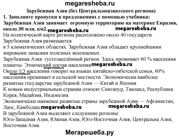 Подробный решебник (ГДЗ) по Географии за 10‐11 (десятый‐одиннадцатый) класс Мой тренажер - готовый ответ Зарубежная Азия - 1. Авторы учебника: Гладкий, Николина, Базовый и углубленный уровень. Издательство: Просвещение 2016.