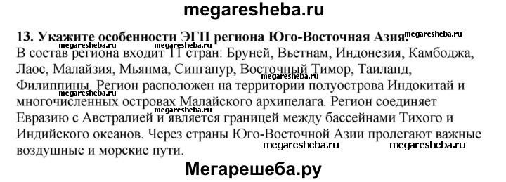 Подробный решебник (ГДЗ) по Географии за 10‐11 (десятый‐одиннадцатый) класс Мой тренажер - готовый ответ Зарубежная Азия - 13. Авторы учебника: Гладкий, Николина, Базовый и углубленный уровень. Издательство: Просвещение 2016.
