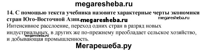 Подробный решебник (ГДЗ) по Географии за 10‐11 (десятый‐одиннадцатый) класс Мой тренажер - готовый ответ Зарубежная Азия - 14. Авторы учебника: Гладкий, Николина, Базовый и углубленный уровень. Издательство: Просвещение 2016.