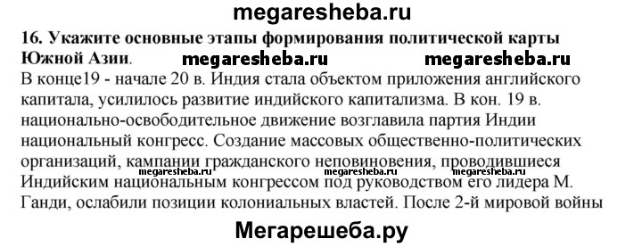Подробный решебник (ГДЗ) по Географии за 10‐11 (десятый‐одиннадцатый) класс Мой тренажер - готовый ответ Зарубежная Азия - 16. Авторы учебника: Гладкий, Николина, Базовый и углубленный уровень. Издательство: Просвещение 2016.