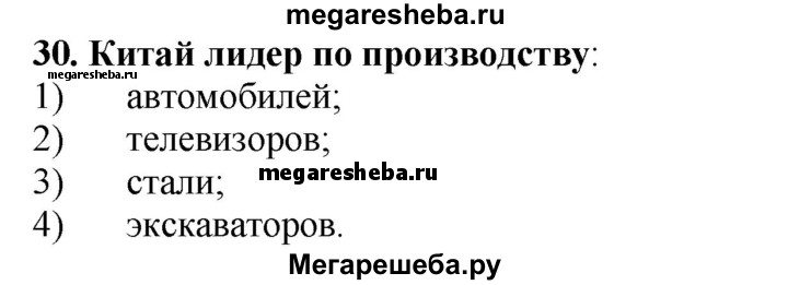 Подробный решебник (ГДЗ) по Географии за 10‐11 (десятый‐одиннадцатый) класс Мой тренажер - готовый ответ Зарубежная Азия - 30. Авторы учебника: Гладкий, Николина, Базовый и углубленный уровень. Издательство: Просвещение 2016.
