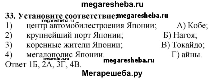 Подробный решебник (ГДЗ) по Географии за 10‐11 (десятый‐одиннадцатый) класс Мой тренажер - готовый ответ Зарубежная Азия - 33. Авторы учебника: Гладкий, Николина, Базовый и углубленный уровень. Издательство: Просвещение 2016.