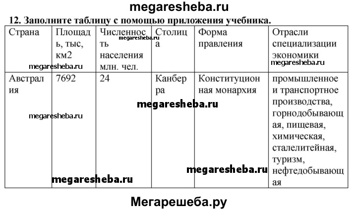Подробный решебник (ГДЗ) по Географии за 10‐11 (десятый‐одиннадцатый) класс Мой тренажер - готовый ответ Юго-Западная Азия, Африка, Австралия и Океания - 12. Авторы учебника: Гладкий, Николина, Базовый и углубленный уровень. Издательство: Просвещение 2016.