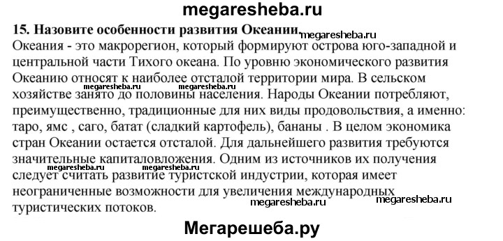Подробный решебник (ГДЗ) по Географии за 10‐11 (десятый‐одиннадцатый) класс Мой тренажер - готовый ответ Юго-Западная Азия, Африка, Австралия и Океания - 15. Авторы учебника: Гладкий, Николина, Базовый и углубленный уровень. Издательство: Просвещение 2016.