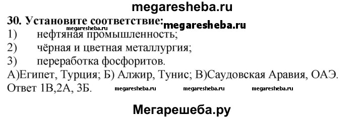 Подробный решебник (ГДЗ) по Географии за 10‐11 (десятый‐одиннадцатый) класс Мой тренажер - готовый ответ Юго-Западная Азия, Африка, Австралия и Океания - 30. Авторы учебника: Гладкий, Николина, Базовый и углубленный уровень. Издательство: Просвещение 2016.