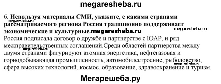 Подробный решебник (ГДЗ) по Географии за 10‐11 (десятый‐одиннадцатый) класс Мой тренажер - готовый ответ Юго-Западная Азия, Африка, Австралия и Океания - 6. Авторы учебника: Гладкий, Николина, Базовый и углубленный уровень. Издательство: Просвещение 2016.