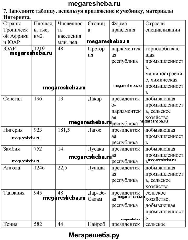 Подробный решебник (ГДЗ) по Географии за 10‐11 (десятый‐одиннадцатый) класс Мой тренажер - готовый ответ Юго-Западная Азия, Африка, Австралия и Океания - 7. Авторы учебника: Гладкий, Николина, Базовый и углубленный уровень. Издательство: Просвещение 2016.