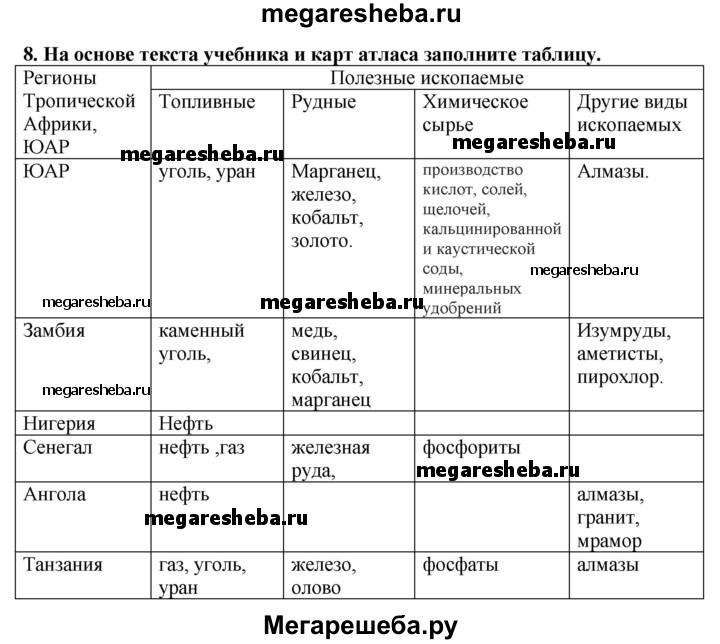 Подробный решебник (ГДЗ) по Географии за 10‐11 (десятый‐одиннадцатый) класс Мой тренажер - готовый ответ Юго-Западная Азия, Африка, Австралия и Океания - 8. Авторы учебника: Гладкий, Николина, Базовый и углубленный уровень. Издательство: Просвещение 2016.