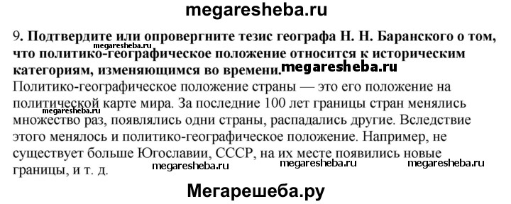 Подробный решебник (ГДЗ) по Географии за 10‐11 (десятый‐одиннадцатый) класс Мой тренажер - готовый ответ Политическая карта - 9. Авторы учебника: Гладкий, Николина, Базовый и углубленный уровень. Издательство: Просвещение 2016.
