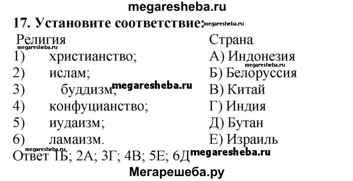 Подробный решебник (ГДЗ) по Географии за 10‐11 (десятый‐одиннадцатый) класс Мой тренажер - готовый ответ География культуры, религий, цивилизаций - 17. Авторы учебника: Гладкий, Николина, Базовый и углубленный уровень. Издательство: Просвещение 2016.