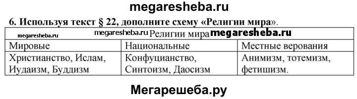 Подробный решебник (ГДЗ) по Географии за 10‐11 (десятый‐одиннадцатый) класс Мой тренажер - готовый ответ География культуры, религий, цивилизаций - 6. Авторы учебника: Гладкий, Николина, Базовый и углубленный уровень. Издательство: Просвещение 2016.