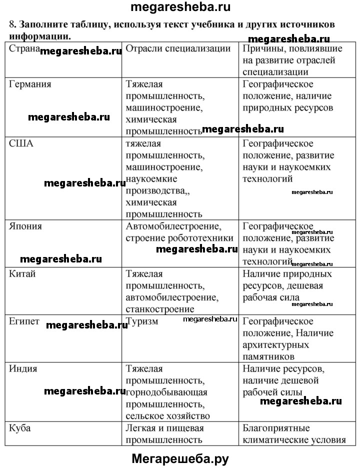 Подробный решебник (ГДЗ) по Географии за 10‐11 (десятый‐одиннадцатый) класс Мой тренажер - готовый ответ География мировой экономики - 8. Авторы учебника: Гладкий, Николина, Базовый и углубленный уровень. Издательство: Просвещение 2016.