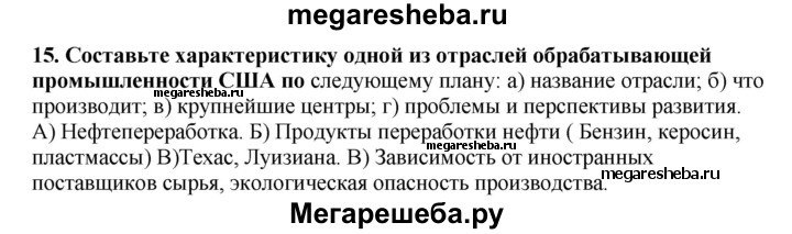 Подробный решебник (ГДЗ) по Географии за 10‐11 (десятый‐одиннадцатый) класс Мой тренажер - готовый ответ Англосаксонская Америка - 15. Авторы учебника: Гладкий, Николина, Базовый и углубленный уровень. Издательство: Просвещение 2016.