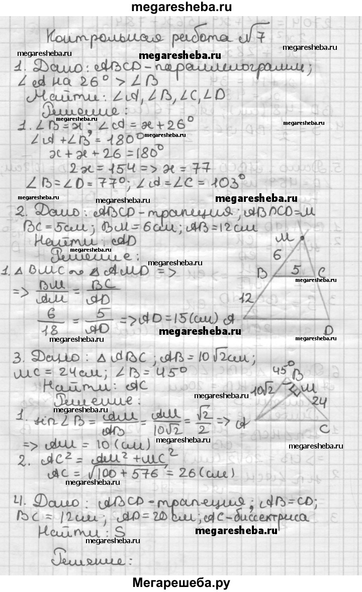 ГДЗ по геометрии 8 класс Мерзляк дидактические материалы контрольные работы вариант 1 - 7