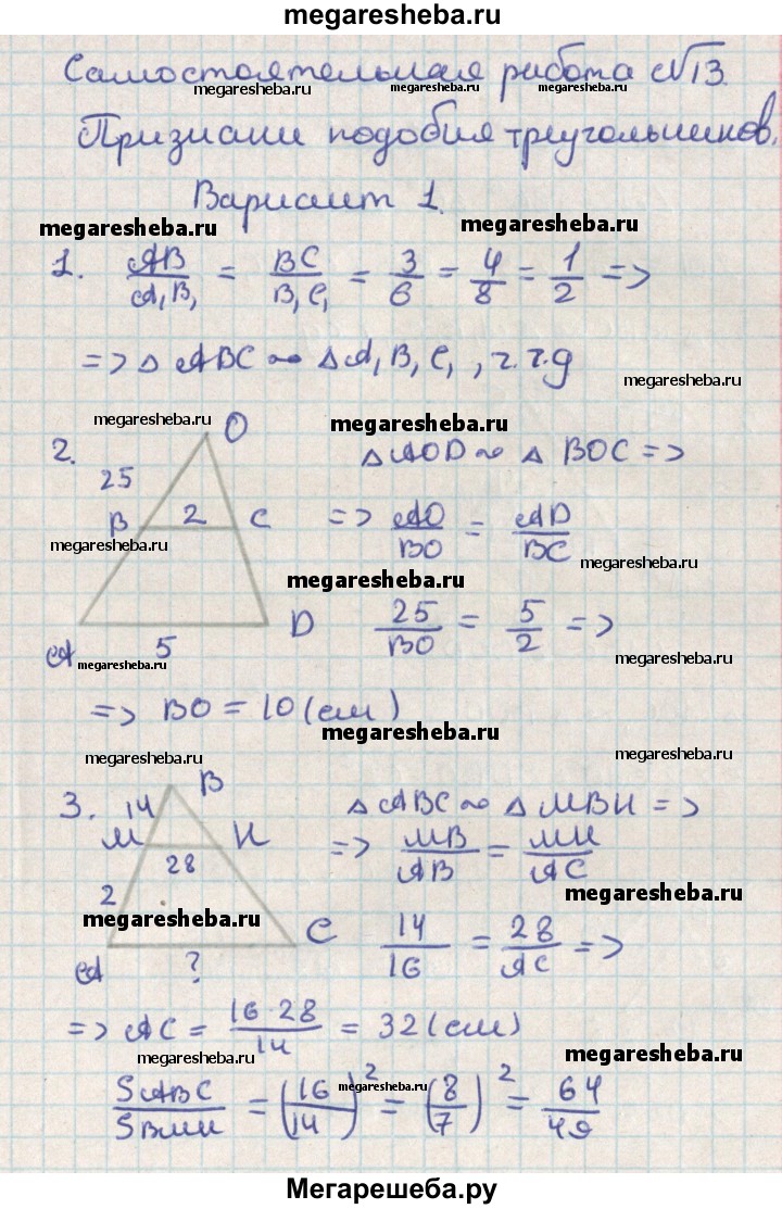 Подробный решебник (ГДЗ) по Геометрии за 8 (восьмой) класс контрольно-измерительные материалы - готовый ответ самостоятельные работы СР-13.вариант - 1. Авторы учебника: Гаврилова. Издательство: ВАКО 2018.