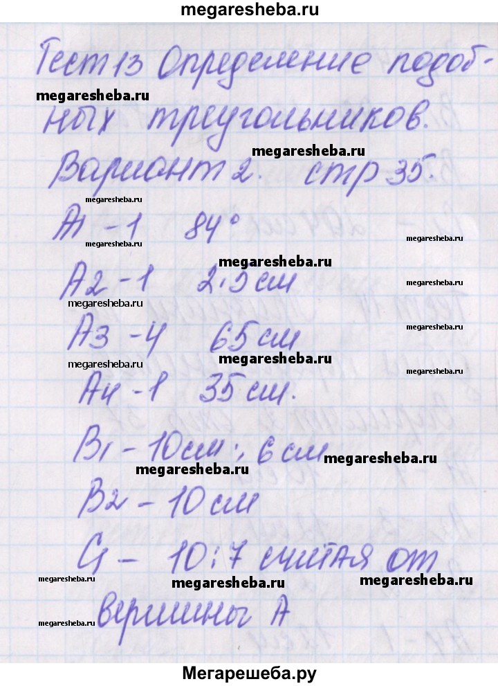 ГДЗ по геометрии 8 класс Гаврилова контрольно-измерительные материалы тесты тест 13. вариант - 2