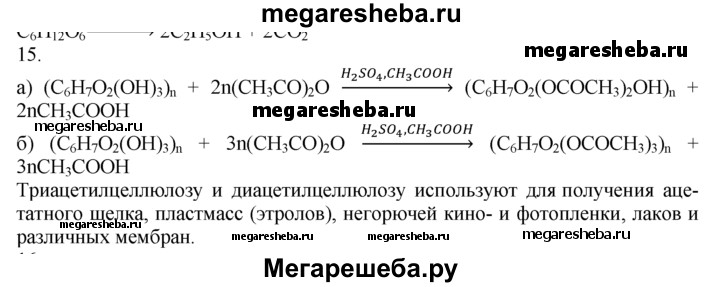 15. Напишите уравнения реакций получения: а) диацетил- целлюлозы; б) триацетилцеллюлозы. Какое практическое применение они находят?