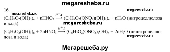 16. Напишите уравнения реакций получения моно-, ди- и тринитроцеллюлозы. Какое из этих веществ используют в производстве бездымного пороха?