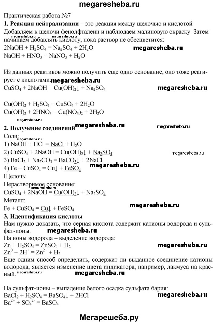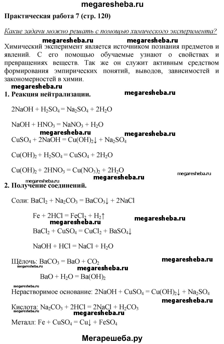 Подробный решебник (ГДЗ) по Химии за 8 (восьмой) класс - готовый ответ практическая работа - 7. Авторы учебника: Габриелян, Остроумов, Сладков, Базовый уровень. Издательство: Просвещение 2018-2024.
