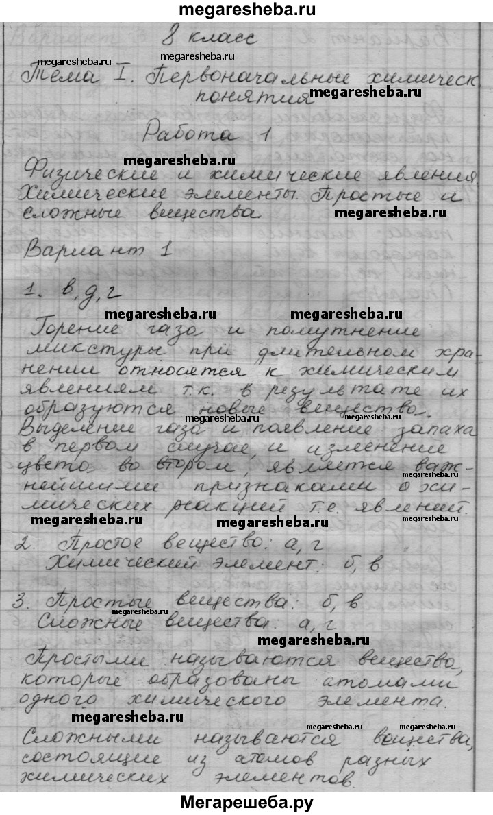 ГДЗ по химии 8‐9 класс Радецкий дидактический материал 8 класс тема 1 работа 1 - 1
