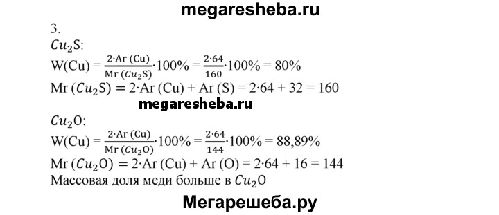 3. В каком соединении массовая доля меди больше — в халькозине Cu2S или в куприте Cu2O?